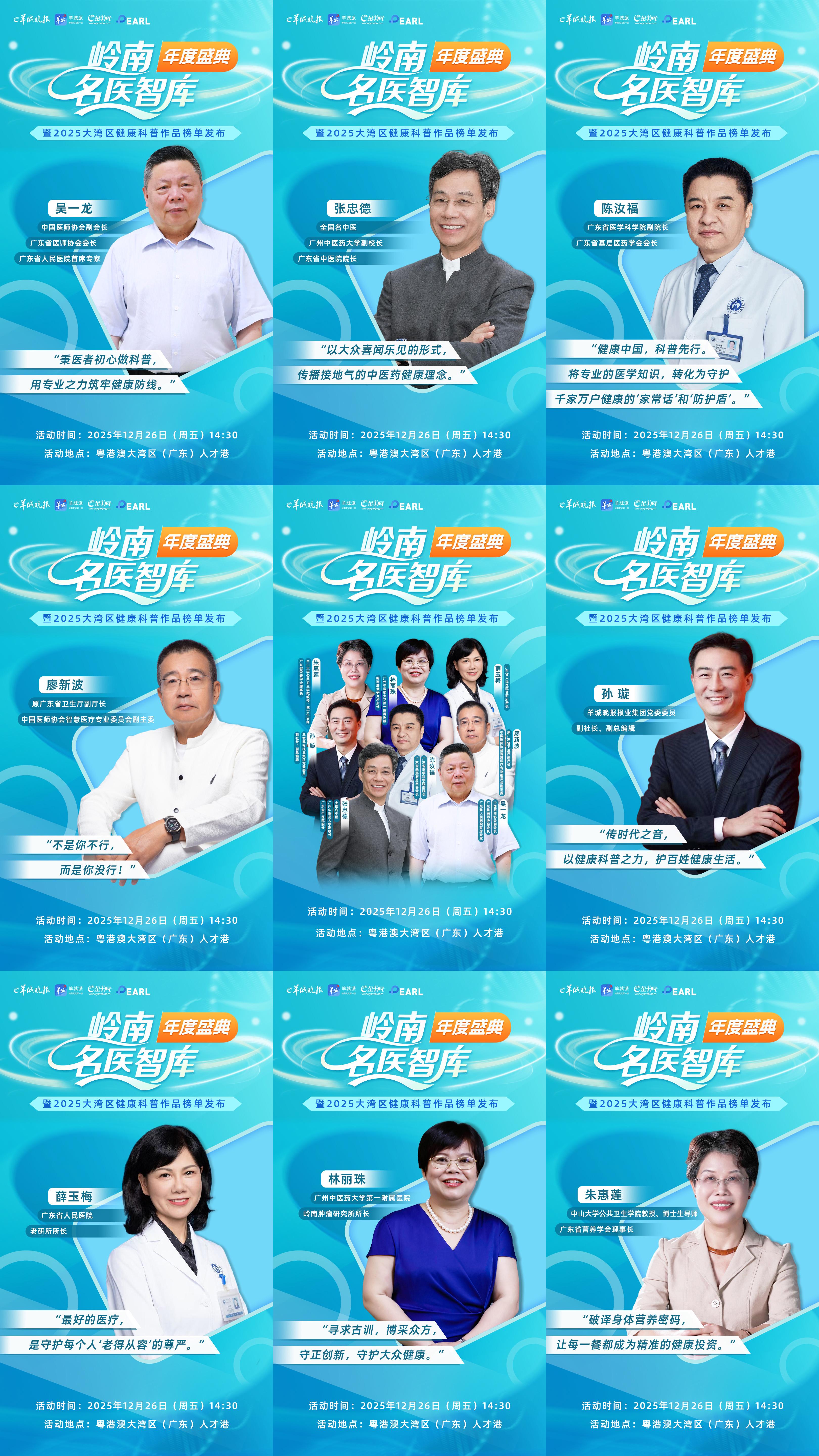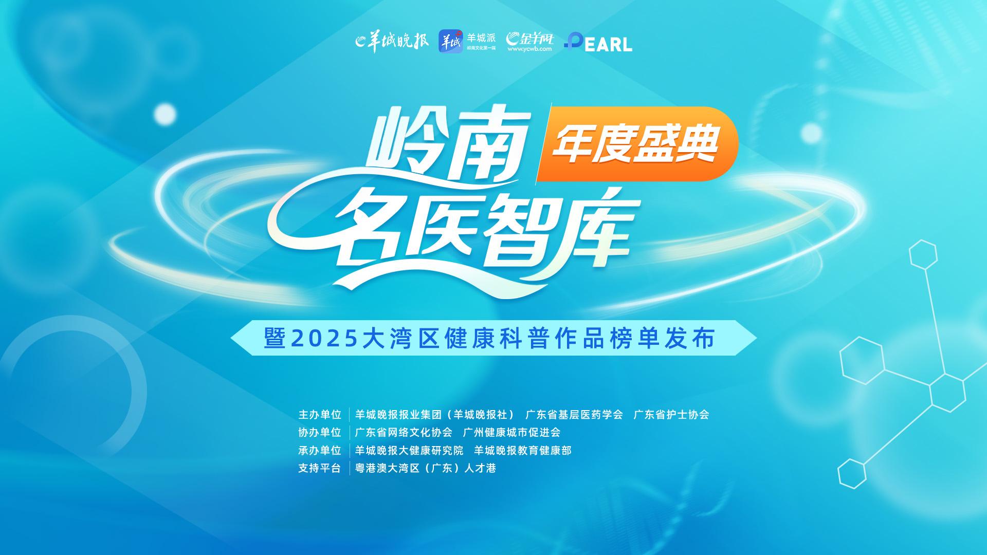 由羊城晚报报业集团(羊城晚报社)、广东省基层医药学会、广东省护士协会共同举办的岭南名医智库年度盛典暨2025大湾区健康科普作品榜单发布,将于12月26日在粤港澳大湾区(广东)人才港隆重举行,本次活动旨在构建医媒协同、多方联动的健康传播新生态,展现大湾区健康科普前沿成果。